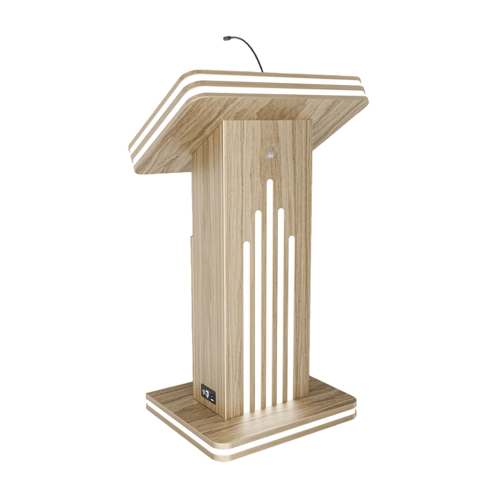 Интерактивная трибуна Light 19" — стильная модель, которая украсит любой бизнес-форум и конференцию. Встроенные микрофоны передают звук на большую аудиторию, удобный интерактивный дисплей с мультитач-системой позволяет отображать необходимую информацию не только для спикера, но и для зрителей, передавая ее на большой экран. Помимо этого, в трибуне есть полочка для воды, а также внешние разъемы. Яркий дизайн корпуса со светодиодным узором не сможет оставить никого равнодушным.