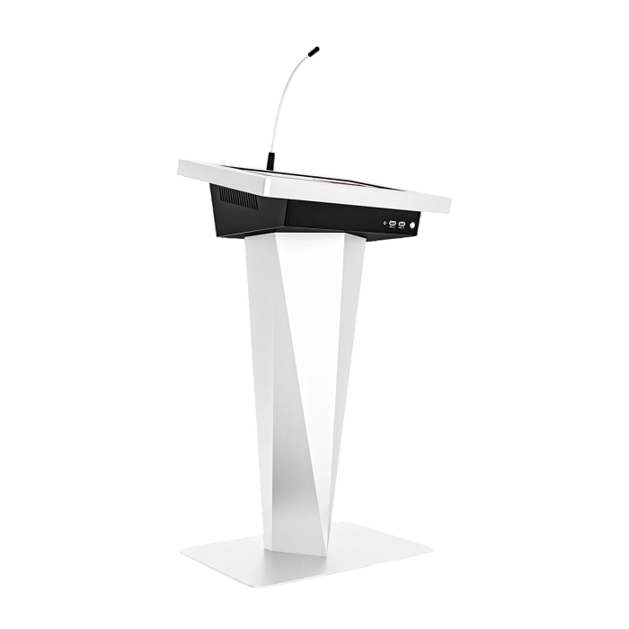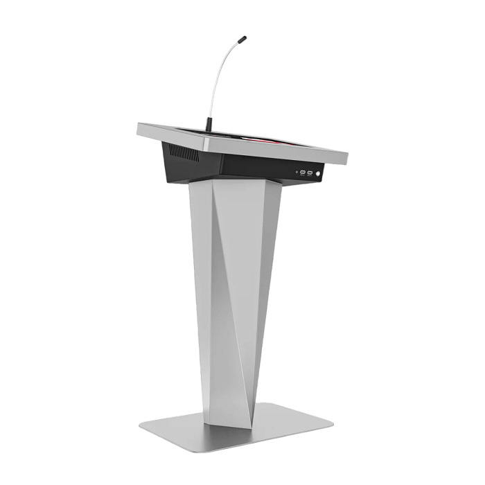 Выступить на большую аудиторию легко и просто, если вы используете интерактивную трибуну Terra 19". Изящный дизайн корпуса, сенсорный дисплей, микрофоны, а также набор всех необходимых разъемов для подключения техники помогут качественно донести информацию до слушателей и запомнить ваше выступление. Возможность брендирования корпуса станет неотъемлемой частью для гармоничного вписывания в пространство. В одной моделе сочетается все, что нужно для интересных и запоминающихся лекций и конференций!