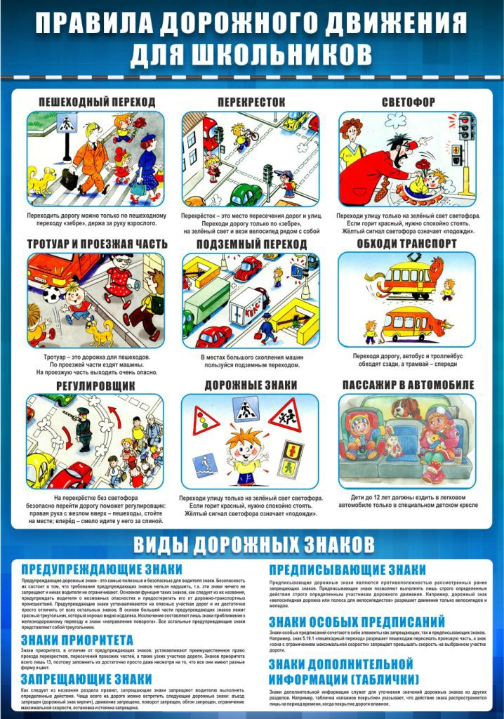 Стенд "ПДД для школьников. Виды дорожных знаков"
