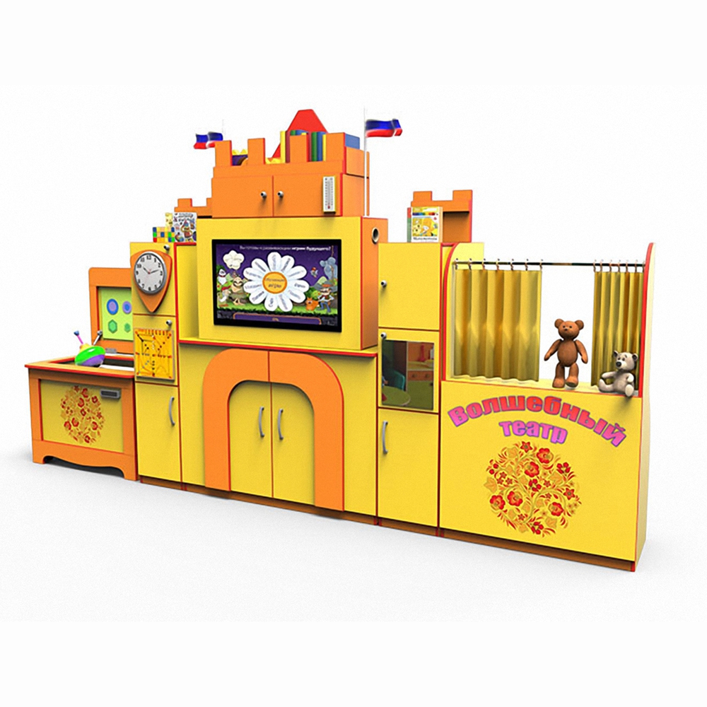 В сборку Logo 50 входит сенсорный монитор размера 32” с Multi Touch System, ПК Intel Celeron 3860U, видеокарта Intel HD Graphics, множество шкафчиков и ящиков, кукольный театр, акустика, зеркало, мышь, клавиатура, кабели HDMI и Usb.