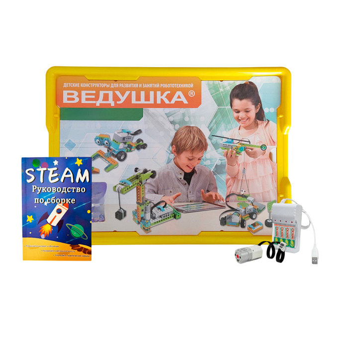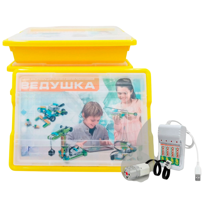 Набор для занятий робототехникой Ведушка с пластиковым боксом для хранения, мотором, зарядным устройством, аккумуляторами и запасным набором деталей