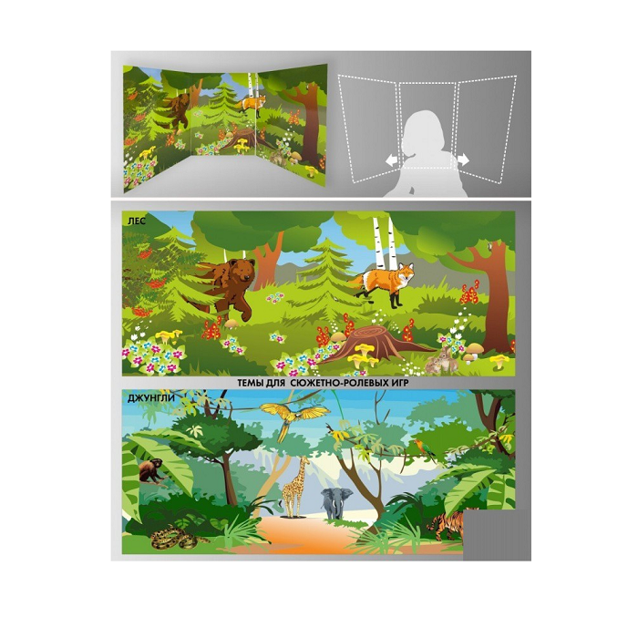 Главная Каталог Подготовительная группа и детский сад Кукольный театр Ширмы и реквизит Стенд для сюжетно-ролевых игр 2-х сторонний (джунгли, лес)