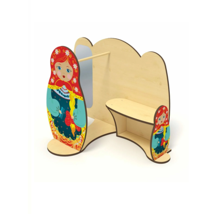 Красочный уголок для переодевания и хранения костюмов в виде матрешки. Фото носит иллюстрационный характер, рисунок печати может отличаться от оригинала.