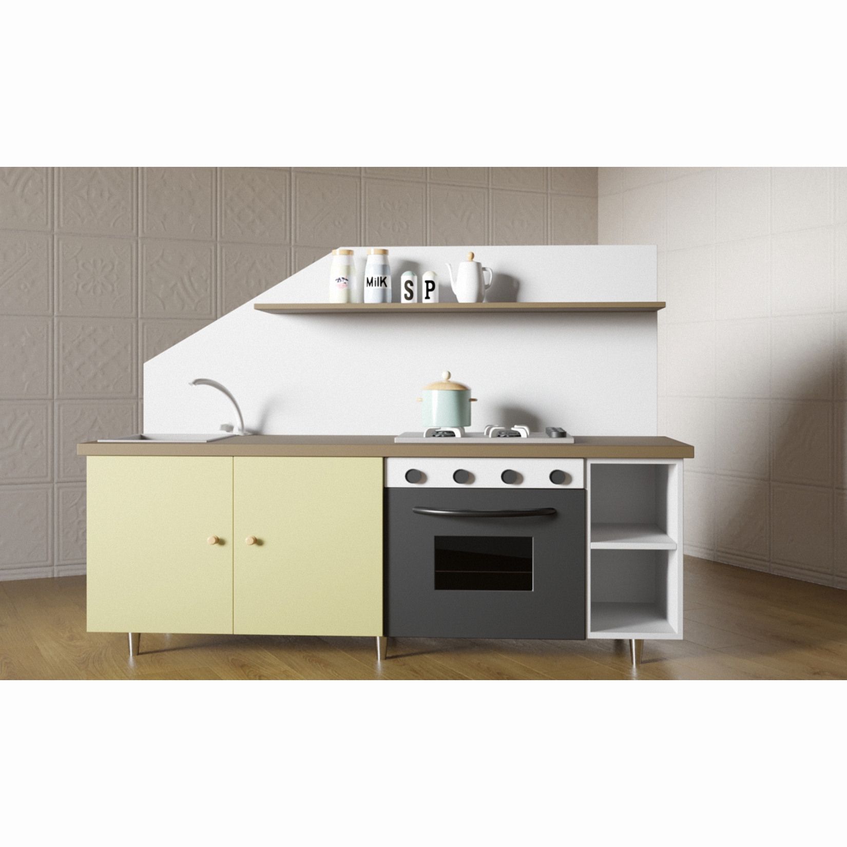 Компактная, многофункциональная и стильная – эта игрушка не оставит равнодушными даже взрослых, не говоря о детях. Исполнена в сдержанных холодных и теплых тонах в сочетании со снежно-белым и удачно дополнит любой интерьер. Сделана из материалов высокого качества и безопасна в использовании. Несмотря на компактные размеры, эта кухня имеет минимальный набор для полноценной полезной игры.