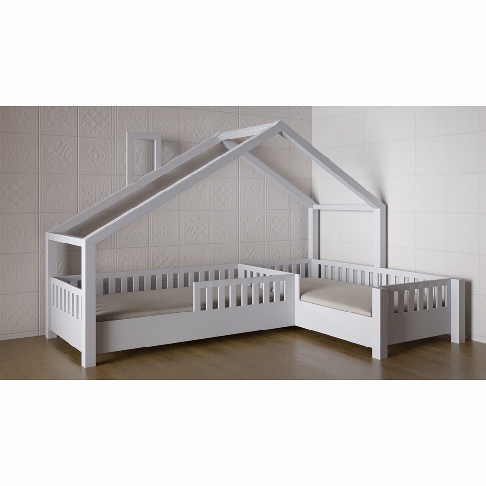Детская двухместная кровать «Мия» предназначена для детей от 3 до 12 лет. Ее можно использовать в помещении с любым интерьером – воздушная и светлая конструкция не будет смотреться громоздко, несмотря на немаленькие размеры. По форме напоминает домик со слегка скошенной крышей и печной трубой. Дизайн наиболее простой и лаконичный – благодаря этому можно украсить место для сна ребенка дополнительными аксессуарами – можно повесить балдахин или добавить ночник-гирлянду. Универсальна – подойдет и для мальчиков, и для девочек. Имеет бортики безопасности. Конструкция кровати надежна и прочна – это гарантирует долгую эксплуатацию.