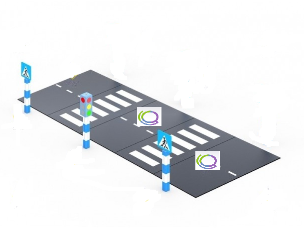 Этот игровой комплекс имеет два пешеходных перехода и четыре знака «Пешеходного перехода» Детям наглядно можно показать и рассказать где и как нужно переходить дорогу, не создавая аварийно-опасную обстановку. Так же игровой элемент имеет два светофора, благодаря которым ребенок выучит три главных света на дороге.