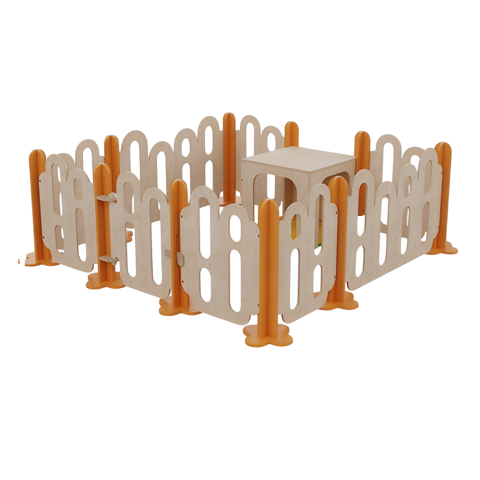 Манеж обеспечивает безопасность малышей, а дополнительный элемент конструкции — куб — расширяет игровое пространство и способствует развитию координации и фантазии.