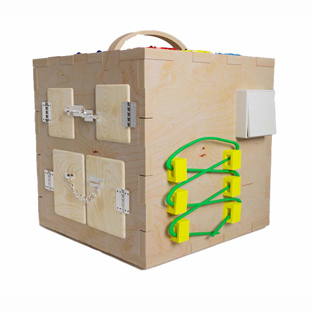 • Бизикуб повторяет элементарные навыки в повседневной жизни: различать время, шнуровать ботинки, включить или выключить свет. Таким образом, малыш становится самостоятельным.