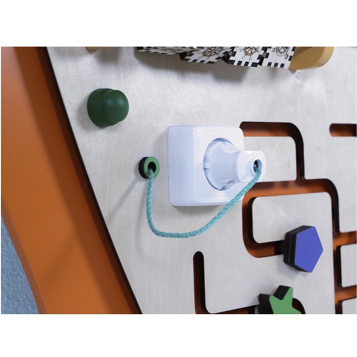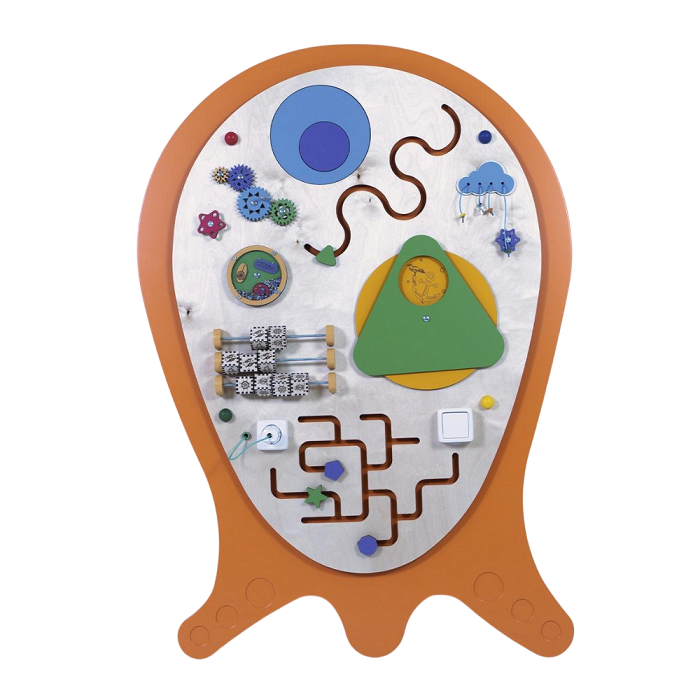 Развивающий сенсорный бизиборд «Крум» украсит стену любого образовательного учреждения. Необычный внешний вид непременно привлечет внимание детей, а встроенные развивающие элементы займут их надолго.