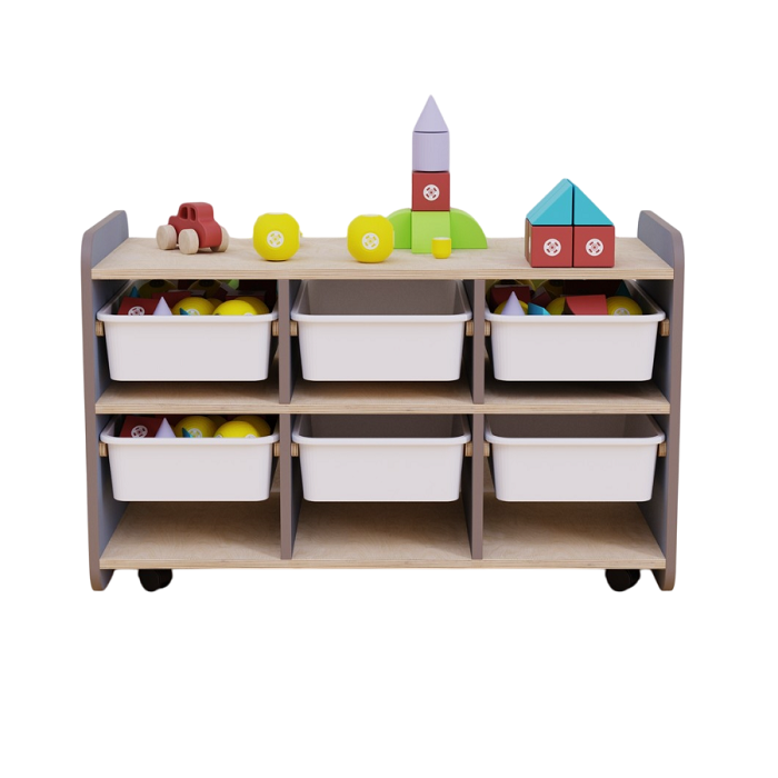 Оборудование является прекрасным решением для современных детских садов и других детских образовательных учреждений, где важны удобство, безопасность и гигиена. Практичные ящики полностью вынимаются из шкафа для очистки и дезинфекции. Они легкие и прочные, и дети могут самостоятельно ими пользоваться, чтобы достать или положить игрушку. Высота модуля также позволяет размещать на поверхности конструкции обучающие игры и дидактическое оборудование.