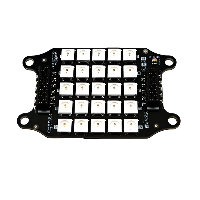 Модуль расширения для квадрокоптера Геоскан Пионер. Плата имеет 25 программируемых RGB-светодиодов. С их помощью вы можете проецировать точечные изображения, символы, анимацию и создавать световые эффекты в воздухе.