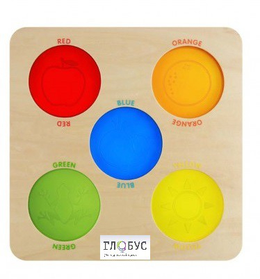 Основание панели выполнено из березовой фанеры, на поверхности которой представлены 5 полупрозрачных кругов в красном, желтом, синем, зеленом и оранжевом цветах. С ее помощью дети могут узнать о разнообразии цветов и весело исследовать мир с помощью цветных кружочков.