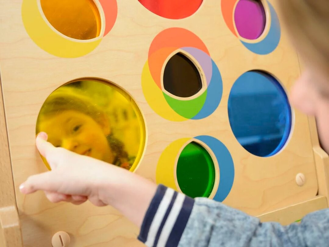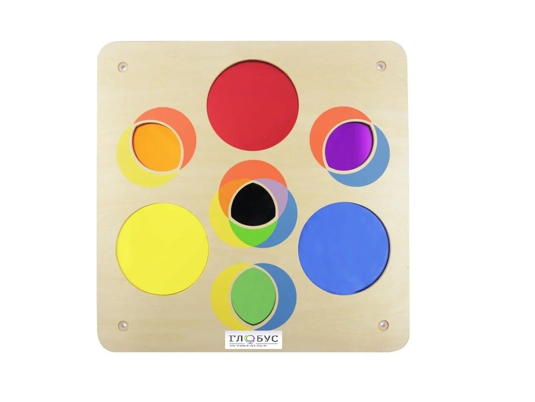 Панель для смешивания цветов способствует обучению и изучению смешивания трех основных цветов: красного, синего и желтого.